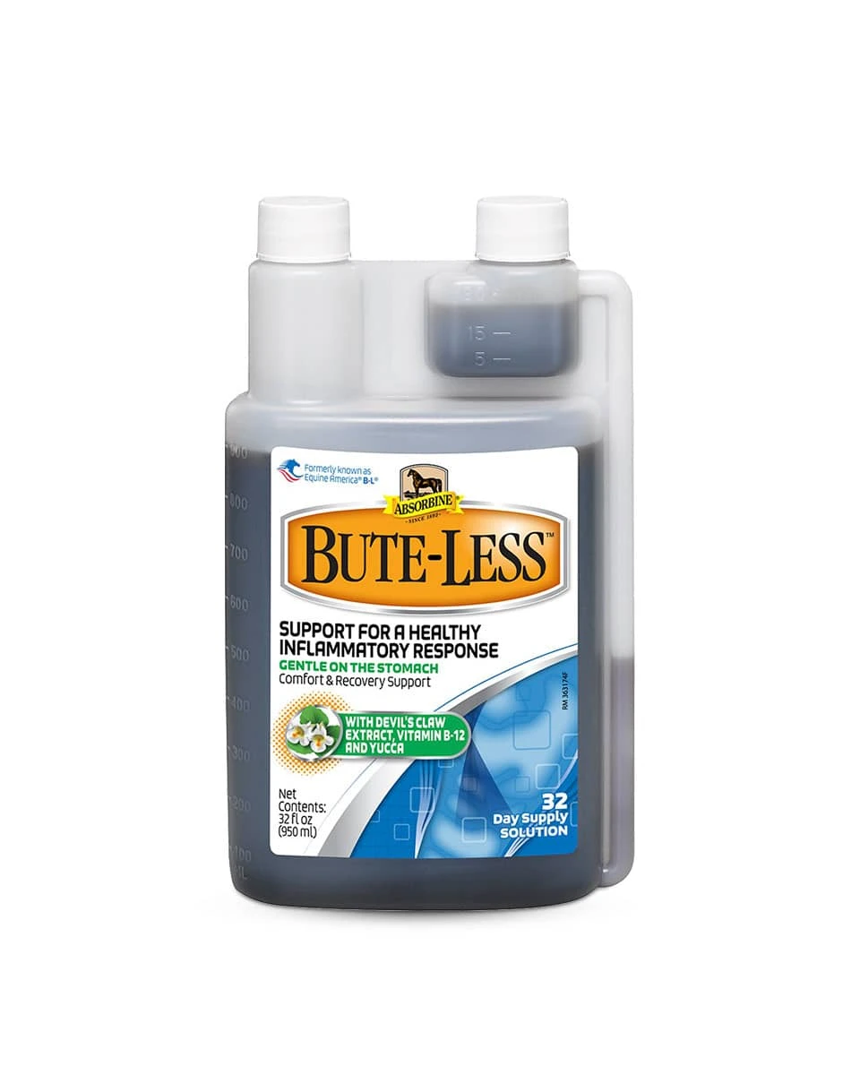 Absorbine’s Bute-Less Solution is a natural alternative to pharmaceutical anti-inflammatories for horses with arthritis or overall soreness. Fortified with devil’s claw, yucca, and vitamin B-12, Bute-Less solution works to relieve the pain associated with those conditions without requiring a prescription. Bute-Less Solution is easy on the stomach and perfect for horses who do not tolerate NSAIDS well but still need help with inflammation associated with arthritis.