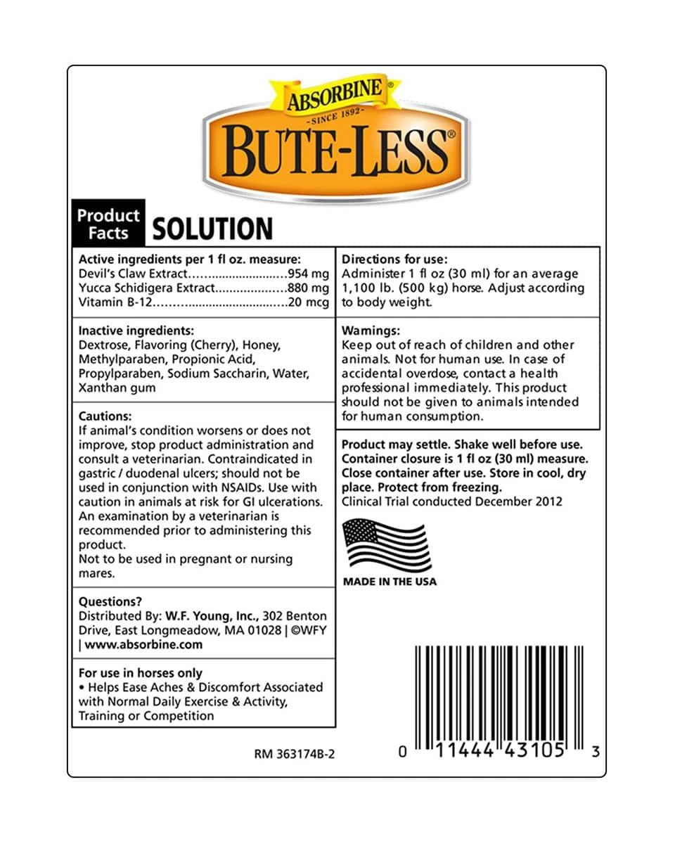 - Liquid formulation makes Bute-Less easy for you to give and easy for your horse to take