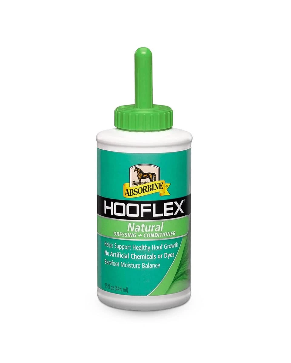 Hooflex All Natural Dressing by Absorbine is an natural alternative that encourages hoof circulation and a rich, natural color. This hoof dressing contains zero petroleum distillates, using natural vegetable oils instead to bring out the natural luster of your horseās hooves without leaving a greasy mess behind. Tea tree oil, avocado oil, and arnica all encourage natural hoof growth and strength, whether barefoot or shod. No artificial colorings or dyes make Hooflex the natural choice for your horseās hooves.Ā