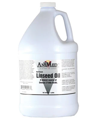 Linseed Oil is a rich source of Omega 3 Fatty Acids and is vital to energy production and stamina. AniMed’s Linseed Oil blend is one of the richest, natural sources of Omega 3 and Omega 6 fatty acids, including alpha-linolenic acid (ALA) derived from plant seeds. Horses require a minimum level of fat in their diet for optimum health.