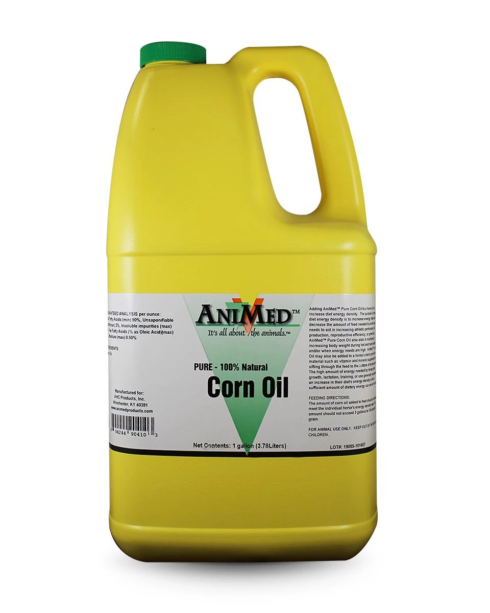 Pure Corn Oil is a natural feed supplement that enhances the shine and luster of horse’s coats and enhances the digestibility of feed. An economic feed supplement, high in fatty acids, that promotes a sleek and lustrous coat. It enhances digestibility and increases energy density of feed, allowing a reduction in total food intake.