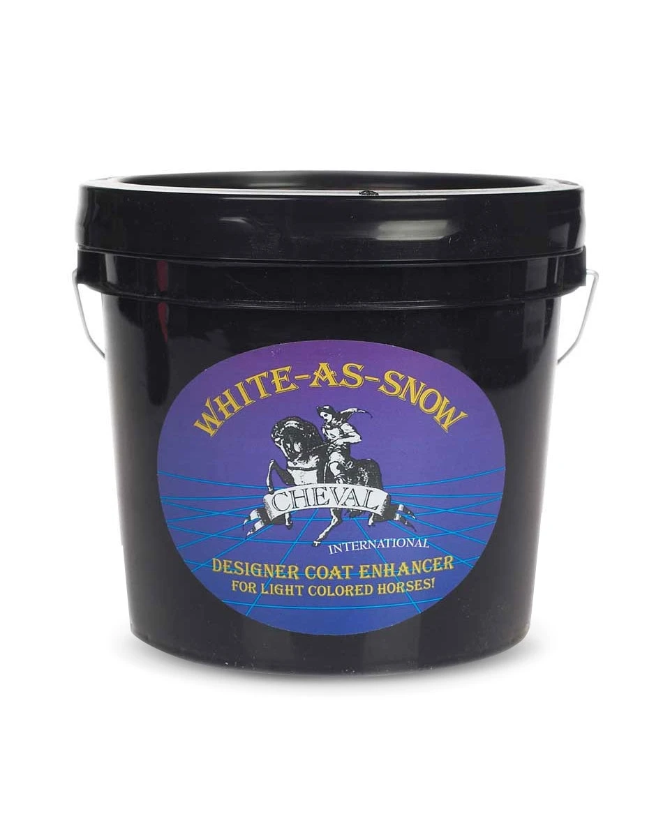 White-As-Snow Coat Enhancer is a one of a kind supplement designed for light colored horses. It promotes a silky, shiny, gleaming coat. Natural ingredients like seaweed and omega oils condition the skin to provide the coat with strong, shiny hairs. White-As-Snow also helps protect the coat from the drying damages of the sun and makes to coat much easier to clean. It fits in nicely to any feeding program.