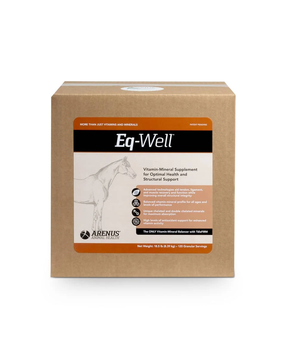 Eq-Well by Arenus is one of the most scientifically advanced vitamin and mineral formulas currently available for horses. What makes Eq-Well different from other multi-vitamin supplements is that it contains chelated minerals. Chelated minerals are minerals that have been combined chemically with amino acids to form complexes, making them more easily absorbed by the body. In turn, these chelated minerals will allow the maximum benefit for your horse’s tendons, ligaments, bones and overall wellness.Â