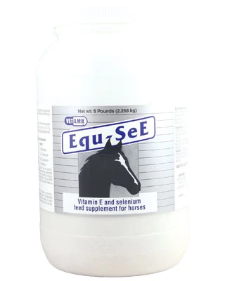 Equ-SeE is a great economic alternative to injecting your horse. Contains 90.7 mg. selenium and 20,000 I.U. vitamin E per pound. Widely used to prevent tying-up and azoturia in horses. Also used to nutritionally treat infertility, muscular weakness in foals, and increase performance.Â