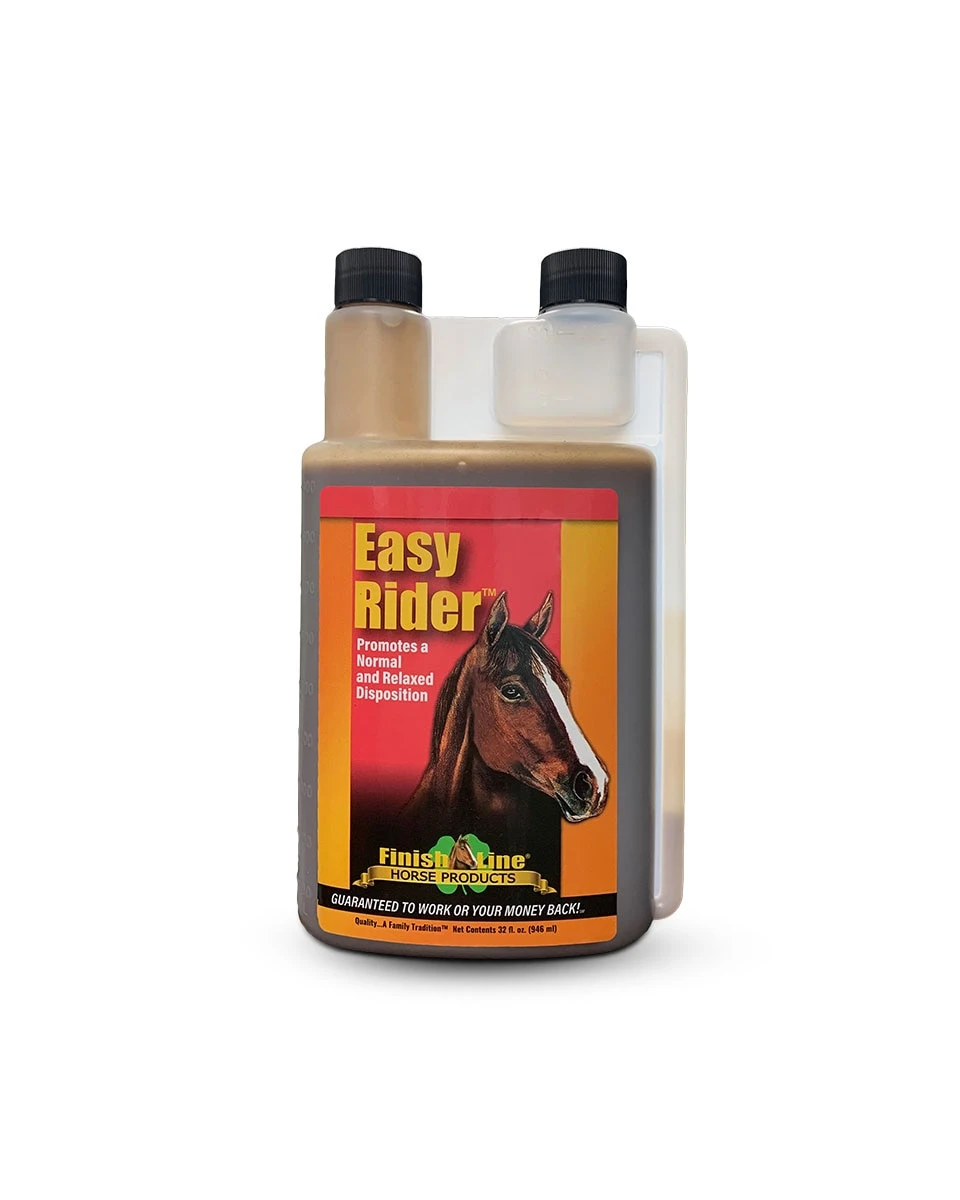 Easy Rider Calming Liquid Horse Supplement from Finish Line promotes mental alertness and relaxation without causing drowsiness allowing you to enjoy your ride every time. Formulated to tackle even the crankiest of horses, Easy Rider helps create a more gentle and agreeable disposition for mares, stallions, and geldings.