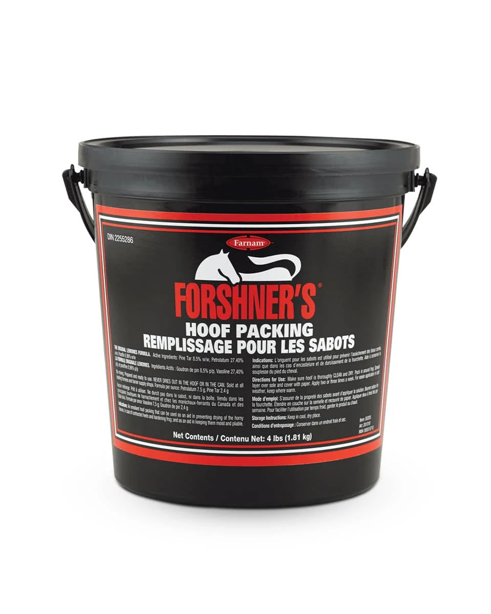Forshner’s Medicated Hoof Packing thick and rich formula keeps working until you remove it and aids in the treatment of hard frogs, contracted heels, hoof dryness, and infection.