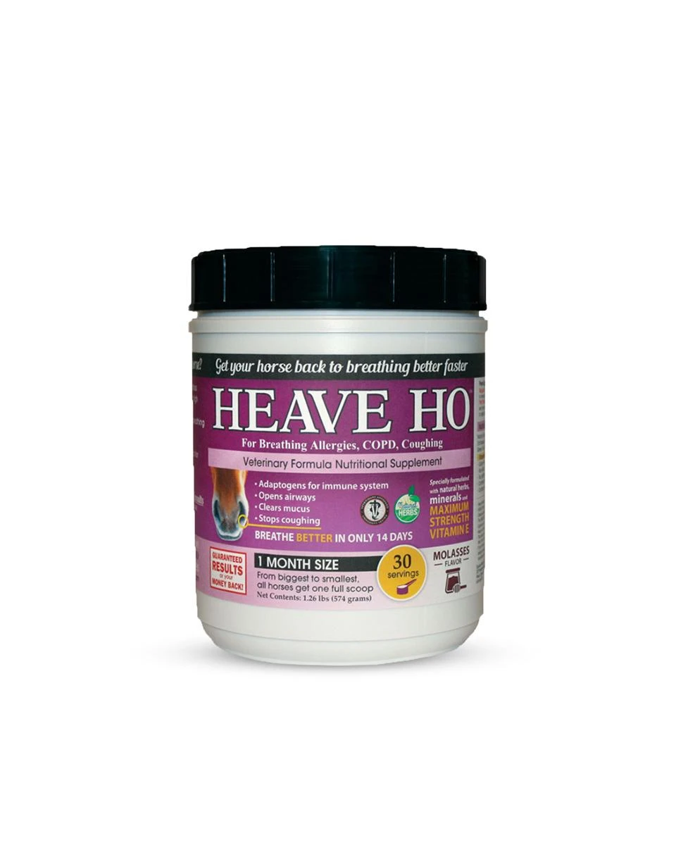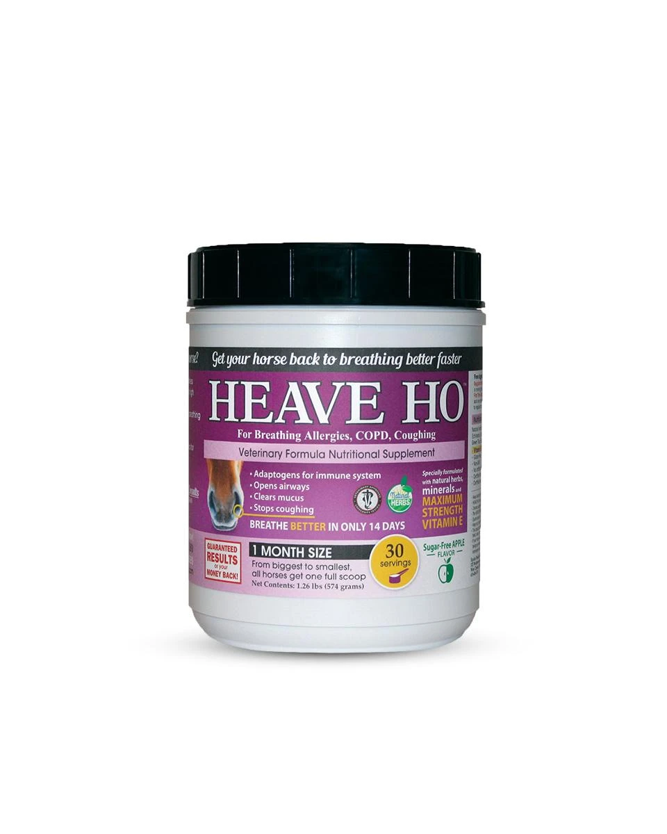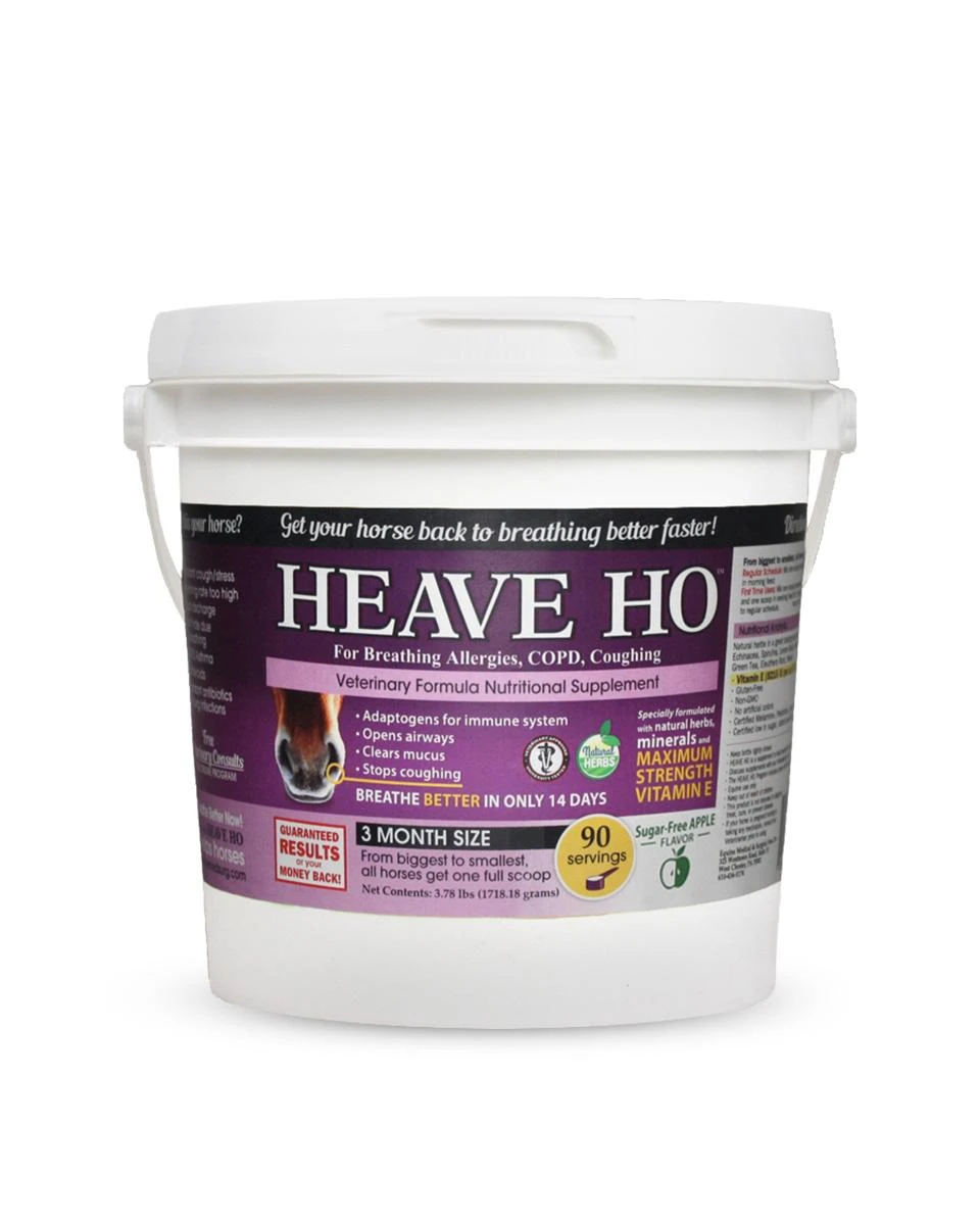 Heave Ho from Equine Medical & Surgical is a supplement that aids with coughing, heaving, COPD, and breathing allergies. Formulated to prevent inflammation and boost the immune system, Heave Ho is all-natural and nutritional. Most horses respond to this product within 10-14 days.Â