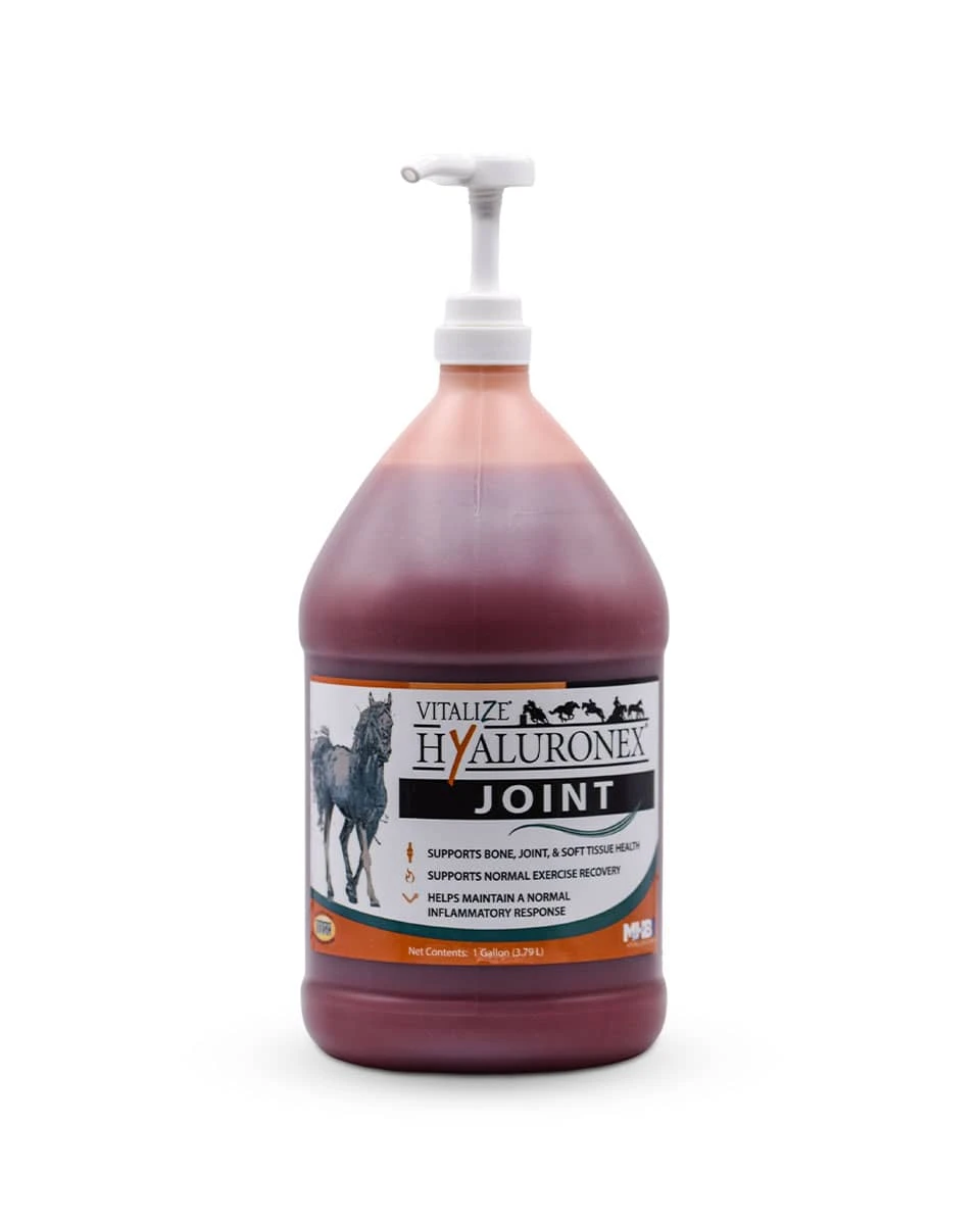 Hyaluronex HA from Biozyme  is a liquid joint supplement designed to promote joint mobility and health. Its highly concentrated formula of bioactive hyaluronan is odorless and tasteless so it is perfect for picky eaters. It can be used for horses in all disciplines and at any activity level. In addition to promoting healthy joints it also can alleviate stiffness, promote healthy cartilage and increase flexibility.Â