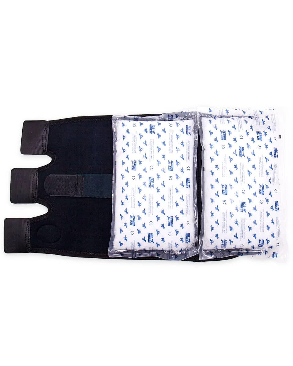 Quality insulated cannon bone/tendon leg wraps that stay cold up to two hours. Noted for their ability to configure to the cannon bone. Provides compression which assists cold penetration of inflamed soft tissue. Reusable after three hours in the freezer. CAN BE USED FOR COLD AND HEAT THERAPY. Patented Propylene Glycol formula, food grade for quality assurance and non-toxic properties. Sold as a set which includes two quality boots and four therapy cold packs.