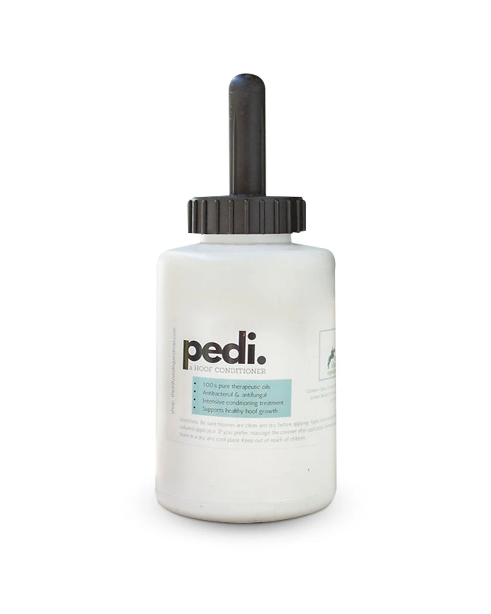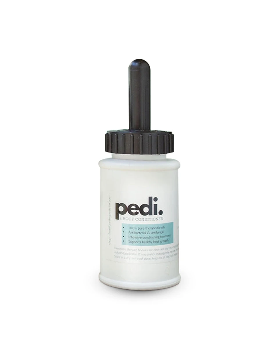 The Infused Equestrian pedi. Hoof Conditioner is a chemical-free proprietary blend of essential oils that will nourish your horse’s hoof and is easy to apply. Packed with natural ingredients like aloe vera, olive oil, and Balsam fir, this hoof conditioner provides superior moisture and even comes with a brush.