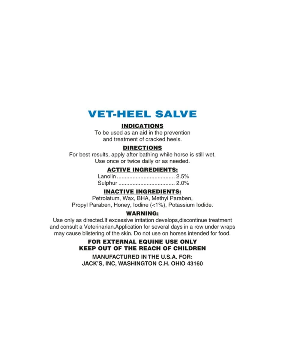 Vet-Heel Salve from McTarnahan’s is a moisturizing ointment intended to prevent and soothe cracked heels or other conditions on your horse caused by dryness and chaffing. Lanolin, sulphur, and honey combine to reduce irritation and restore your horse’s healthy, moisturized skin and coat. Horsemen have also found success using this product on ear warts.Â