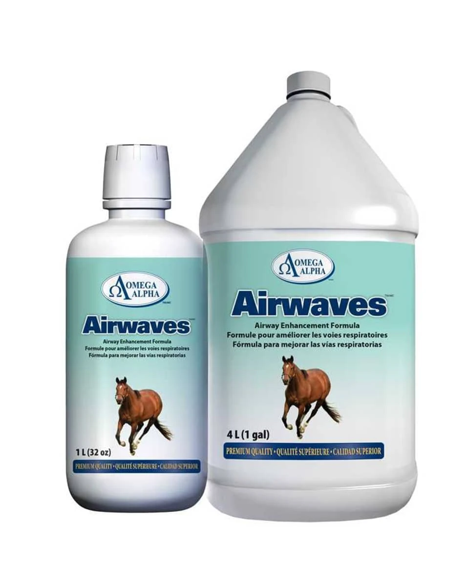 Airwaves from Omega Alpha is potent bronchodilator that helps to stimulate the opening of the airway and clear the airway of mucus. This product is formulated to relieve broncho-spasms and is a helpful cough suppressant. Along with the other key components, Airwaves helps to ease inflammation in the chest and helps to alleviate allergic symptoms. Effective for breeders or horses with heaves.Â