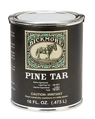 Bickmore Pine Tar Hoof Care Formula is a topical antiseptic formula that helps hooves keep in moisture and promote hoof growth as well as provides treatment for quarter cracks and hard frogs.