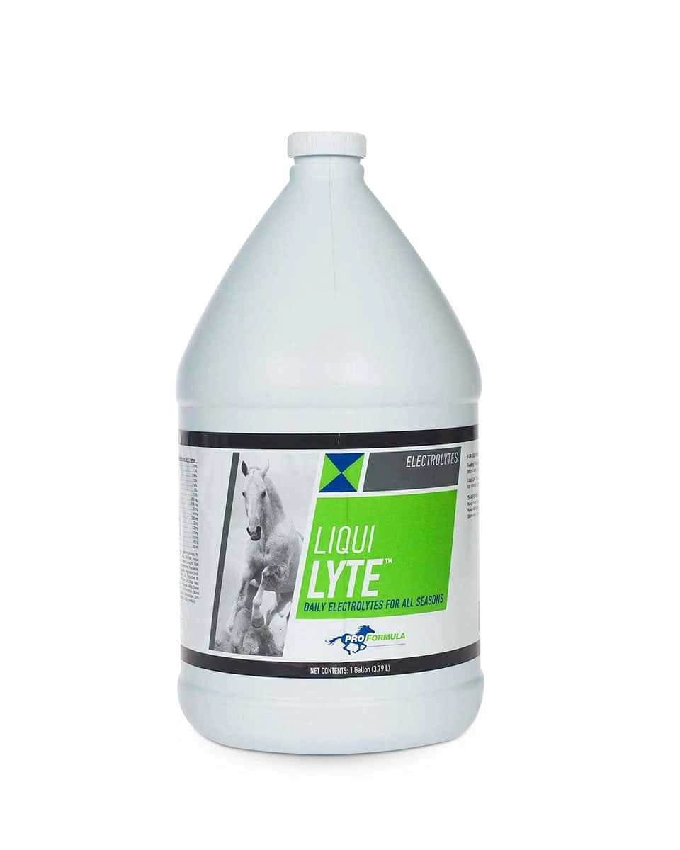 Pro Formula Labs Liqui Lyte Electrolyte is a fast-acting supplement that helps replenish your horse’s salts and minerals and prevent dehydration. The liquid formula helps prevent electrolyte depletion caused by changing weather conditions, heat, humidity, and stress from training or performance. Liqui Lyte Electrolyte helps more than dehydration, it also supports healthy heart contraction, nerve function, intestinal health, and nutrient absorption.Â