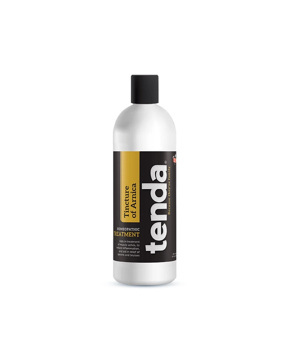 Tincture of Arnica from Tenda can be used as a liniment, wash, or with poultice to reduce swelling and inflammation. This homeopathic formula contains arnica as a remedy for strains, bruising, and muscle aches. Tincture of Arnica is ideal for horses in heavy training or competition. You can even use this product as an all-over wash on sore bodies!