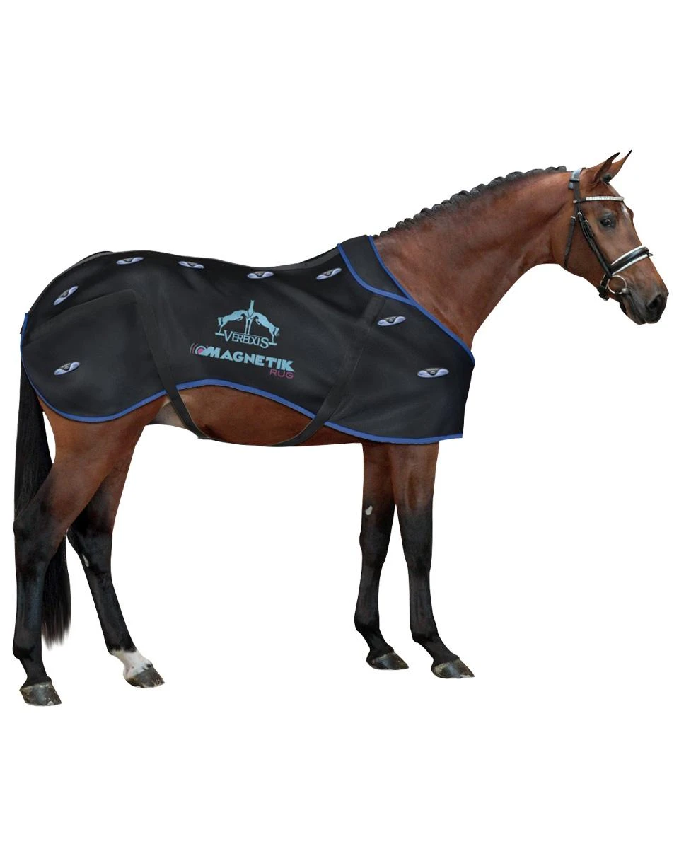 The Magnetik Sheet from Veredus uses magnetic therapy to help encourage healing and get your horse ready to ride. This sheet has 32 neodymium magnets strategically placed around key muscles and structures to maximize the effect. Veredus’ Magnetik technology stimulates blood flow to encourage healing and prepare muscles. Made with a breathable micro-porous fabric, this blanket will stimulate the muscles without causing your horse to overheat. Veredus recommends consulting with a veterinarian before beginning any kind of magnetic therapy.Â